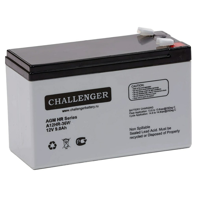 Модель Challenger A12HR-36W относится к специализированным аккумуляторным батареям и разработана для эксплуатации при кратковременных разрядах в режиме высоких токов — 36 Вт/блок за 15 мин. Она произведена по современной технологии и отличается усовершенствованной формулой сплава сетки.