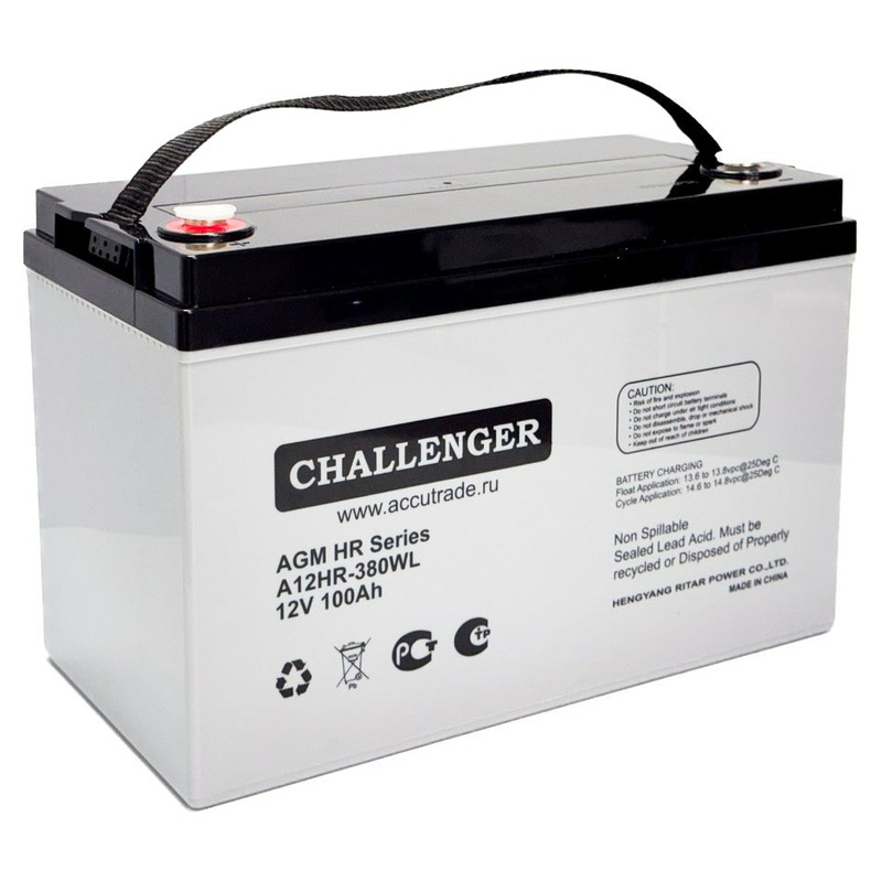 Challenger A12HR-380WL — герметизированная необслуживаемая аккумуляторная батарея (VRLA). Серия HR12 разработана для работы в буферном режиме и обладает повышенной мощностью (+ 30 % к стандартному ряду). Используется в источниках бесперебойного питания, системах безопасности, медицине, системах связи, в альтернативной энергетике и т. д. Срок службы — 15 лет. Соответствует стандартам IEC, JIS.