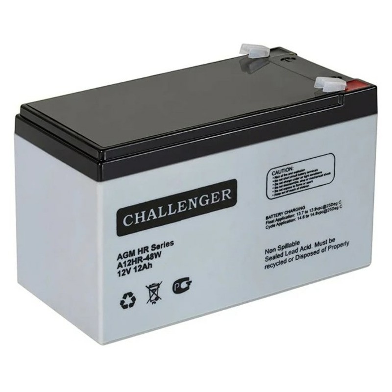 Модель Challenger A12HR-48W относится к специализированным аккумуляторным батареям и разработана для эксплуатации при кратковременных разрядах в режиме высоких токов — 48 Вт/блок за 15 мин. Она произведена по современной технологии и отличается усовершенствованной формулой сплава сетки.