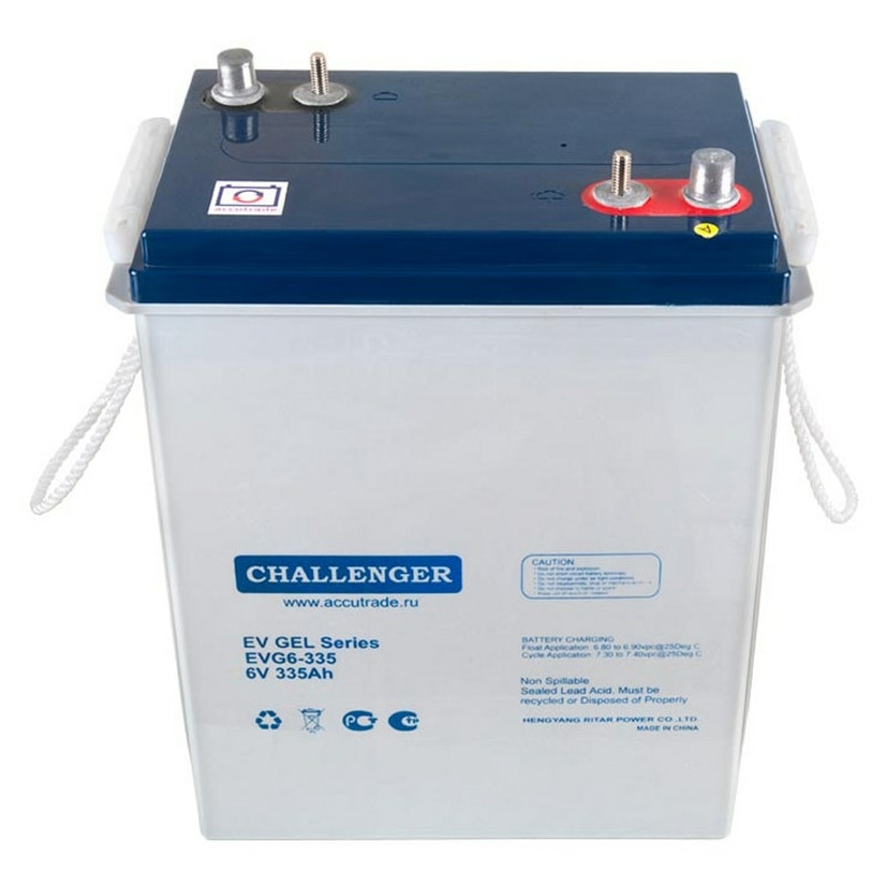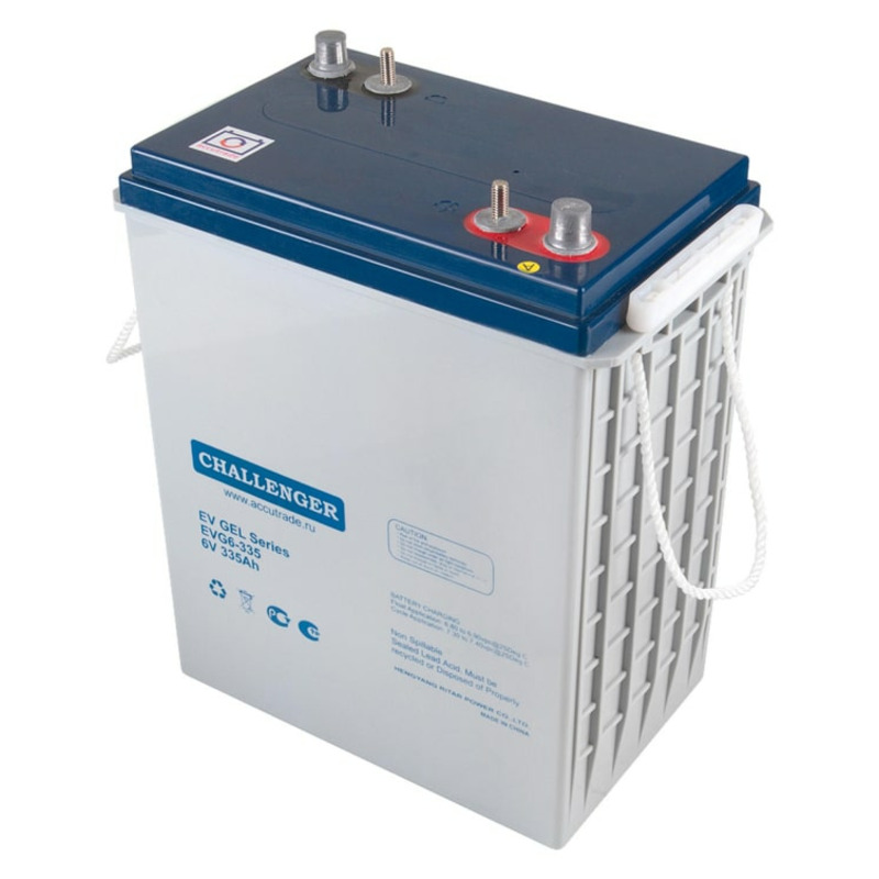 Тяговый аккумулятор Challenger EVG6-335 разработан по технологии GEL. Электролит находится в состоянии геля, что повышает сопротивляемость глубоким разрядам и воздействию температур. Это положительно сказывается на сроке службы батареи. Корпус из ударопрочного пластика надёжно герметизирован. На крышке установлен VRLA-клапан. Он отвечает за поддержание давления, необходимого для рекомбинации газов. За счёт этого обслуживание аккумулятора не требуется на протяжении всего срока службы. Срок службы составляет 600 циклов при глубине разряда 80%. При своевременной и правильной подзарядке батарея прослужит дольше. Используйте автоматическое зарядное устройство, убедитесь, что оно полностью соответствует аккумулятору. Рекомендуется заряжать батарею после каждого использования.