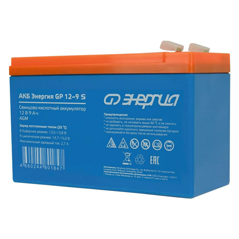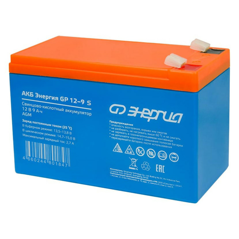 Аккумулятор Энергия GP 12-9 S изготовлен по технологии AGM и предназначен для эксплуатации в буферном режиме в устройствах бесперебойного электропитания, охранной и пожарной сигнализации, информационных и телекоммуникационных системах и других типах оборудования, при работе которых не допускается перерывов в электропитании.