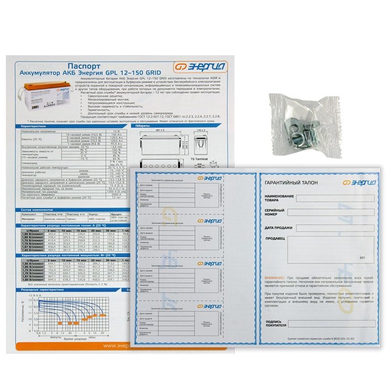 Характеристики Аккумулятор Энергия GPL 12-150 Grid