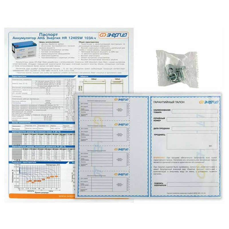 Характеристики Аккумулятор Энергия HR 12405W 103Ач