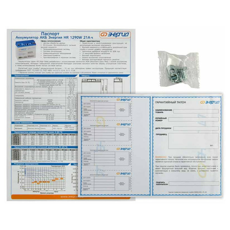 Доставка и оплата Аккумулятор Энергия HR 1290W 21Ач