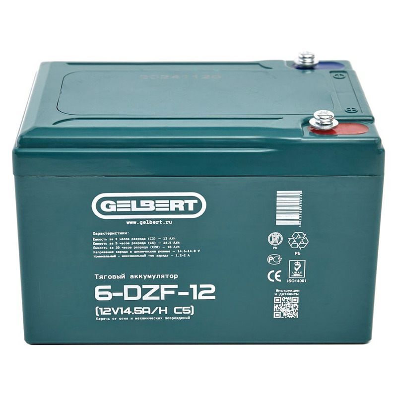 Характеристики Аккумулятор Gelbert 6-DZF-12 (12V14.5A/H C5)