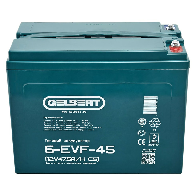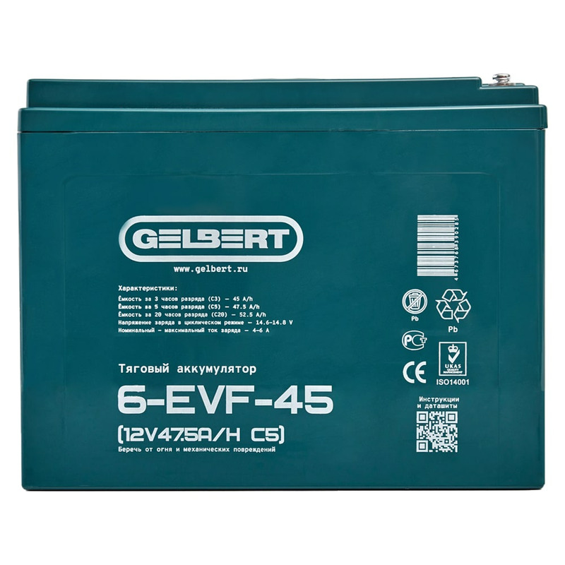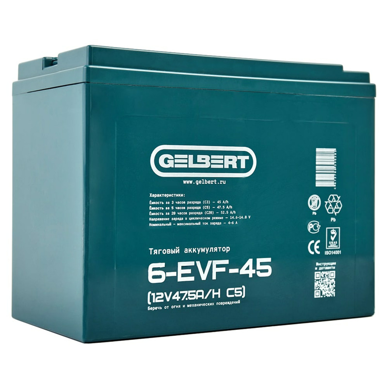 Характеристики Аккумулятор Gelbert 6-EVF-45 (12V47.5A/H C5)