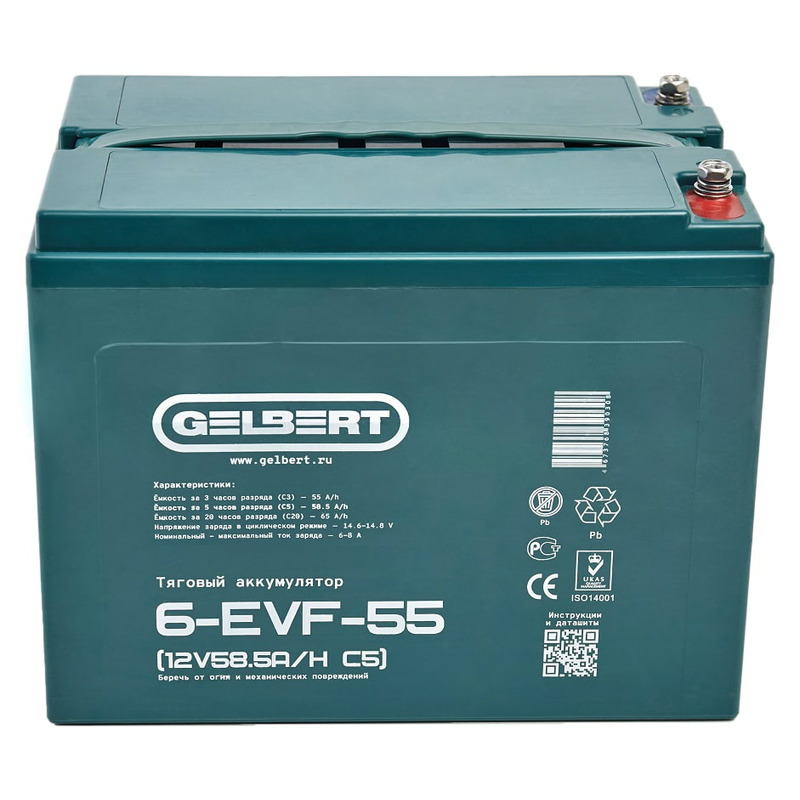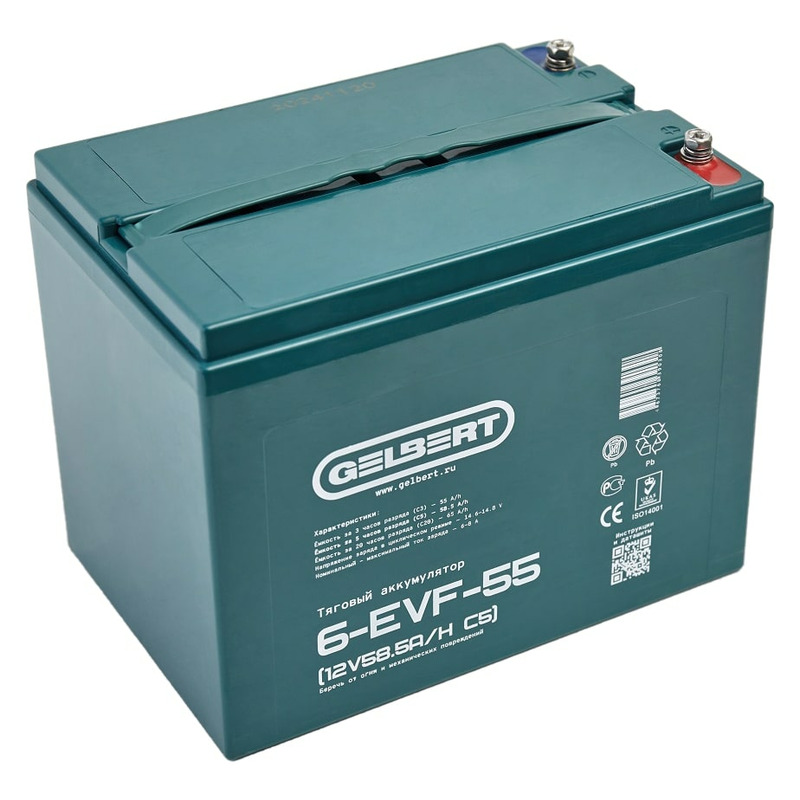 Характеристики Аккумулятор Gelbert 6-EVF-55 (12V58.5A/H C5)