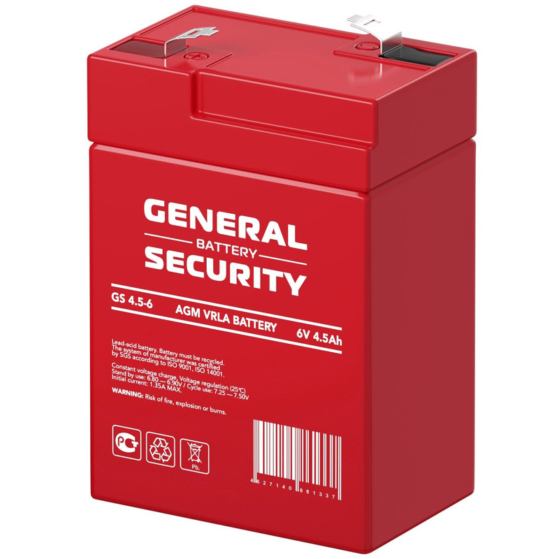 - Аккумулятор General Security GS 4.5-6 - 1 шт.