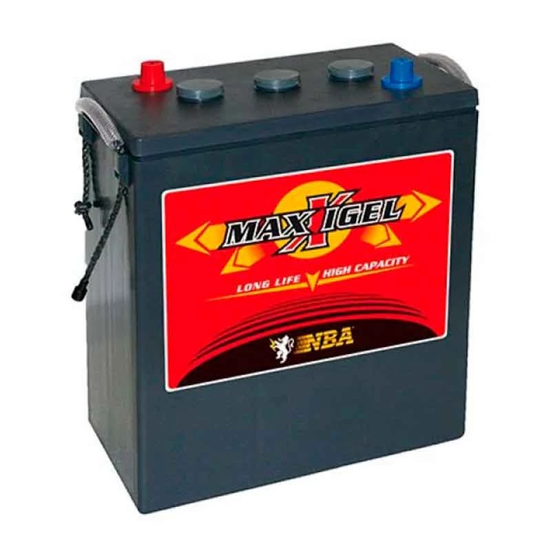 Тяговая батарея с гелеобразным электролитом (технология GEL) NBA MAXXIGEL производится ёмкостью C5 = 250 Ач и напряжением 6 В. Аккумулятор подходит для использования в поломоечных машинах, инвалидных колясках, складской и погрузочной технике, гольфкарах, солнечных панелей и других приборах с электродвигателем. Электролит внутри корпуса находится в желеобразном состоянии, поэтому тяговый аккумулятор NBA MAXXIGEL можно использовать как в вертикальном, так и в горизонтальном положении. Благодаря технологии GEL батарея менее подвержена температурному воздействию и более устойчива к глубоким разрядам. Прочный корпус надёжно герметизирован, обслуживать батарею не требуется.