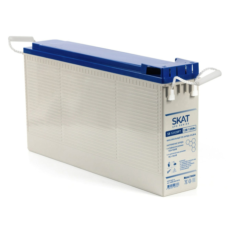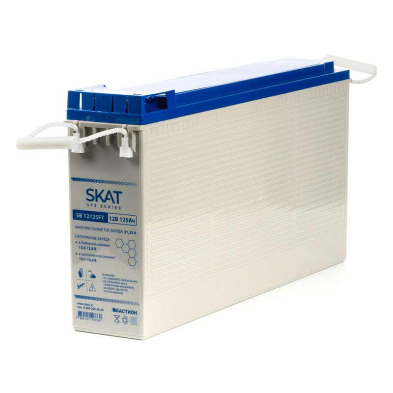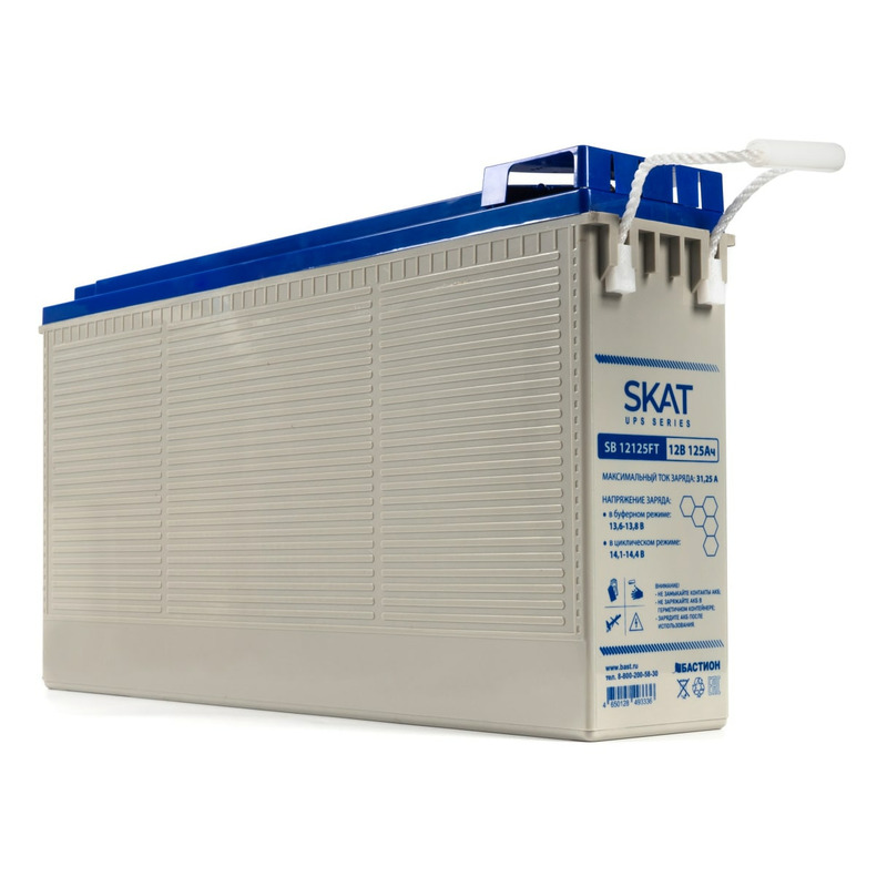 Аккумулятор герметичный свинцово-кислотный необслуживаемый SKAT SB 12125FT, производимый по технологии AGM (Absorbent Glass Mat) с системой рекомбинации газов VLRA, предназначен для использования в составе системы резервного питания.