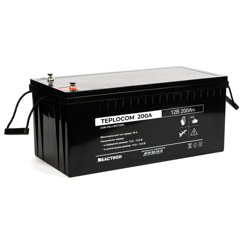 TEPLOCOM 200 - аккумулятор герметичный свинцово-кислотный необслуживаемый, производится по технологии AGM (Absorbent Glass Mat) с системой рекомбинации газов VLRA и предназначен для использования в составе системы резервного питания.