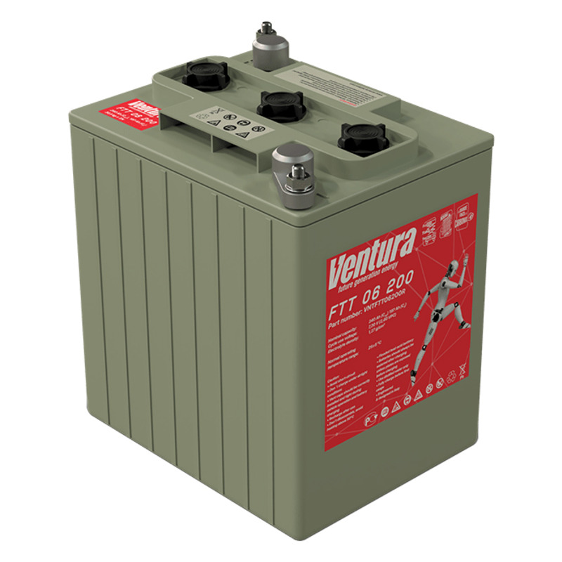Тяговый аккумулятор Ventura FFT 06 200 производится ёмкостью C5 199 Ач и напряжением 6 В с применением технологии WET. Главная особенность этой батареи — продолжительный срок службы: до 1200 циклов при DOD = 60%. Внутри тягового АКБ Ventura FFT 06 200 расположены трубчатые пластины из специального сплава. Это обеспечивает быструю подзарядку батареи за счёт низкого внутреннего сопротивления. Тяговый аккумулятор Ventura FFT 06 200 разработан специально для работы в тяжёлых условиях. Эксплуатировать батарею можно даже в экстремальных условиях.