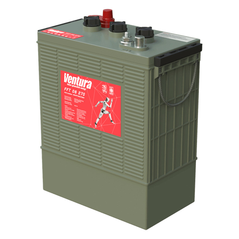 Тяговый аккумулятор Ventura FFT 06 270 производится ёмкостью C5 270 Ач и напряжением 6 В с применением технологии WET. Главная особенность этой батареи — продолжительный срок службы: до 1000 циклов при DOD = 60%. Внутри тягового АКБ Ventura FFT 06 270 расположены трубчатые пластины из специального сплава. Это обеспечивает быструю подзарядку батареи за счёт низкого внутреннего сопротивления. Тяговый аккумулятор Ventura FFT 06 270 разработан специально для работы в тяжёлых условиях. Эксплуатировать батарею можно даже в экстремальных условиях.