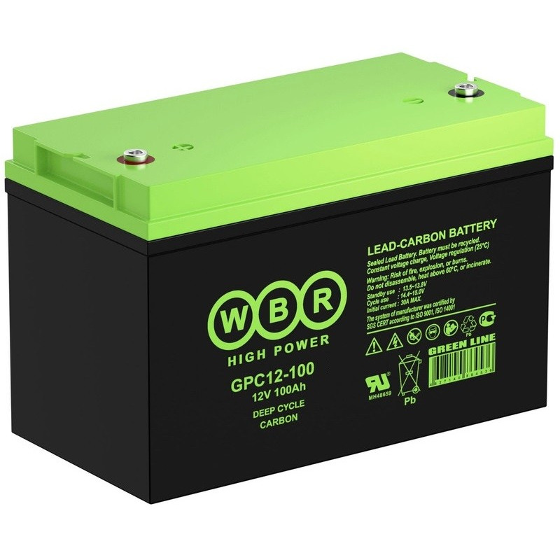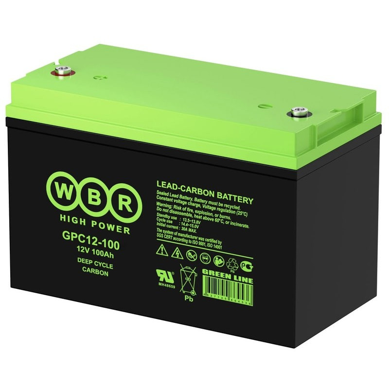 Аккумуляторы WBR серии GPC - герметизированные карбоновые свинцово-кислотные аккумуляторные батареи со сроком службы 15 лет или более 1900 расчетных циклов заряда-разряда в циклическом режиме при 70% разряде. Эти высокоэффективные перезаряжаемые батареи не требуют обслуживания в течение всего срока службы и за счет использования чистого свинца, а также добавки углерода в состав электродов получили улучшенные зарядные и разрядные характеристики.