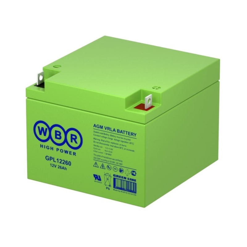 Аккумуляторные батареи WBR серии GPL - батареи общего применения c увеличенным сроком службы в буферном режиме по сравнению с серией GP до 12 лет при температуре 25 °С. Эти батареи предназначены для длительной эксплуатации в источниках бесперебойного питания систем телекоммуникации и связи, другом оборудовании и могут использоваться как в буферном, так и в циклическом режимах.