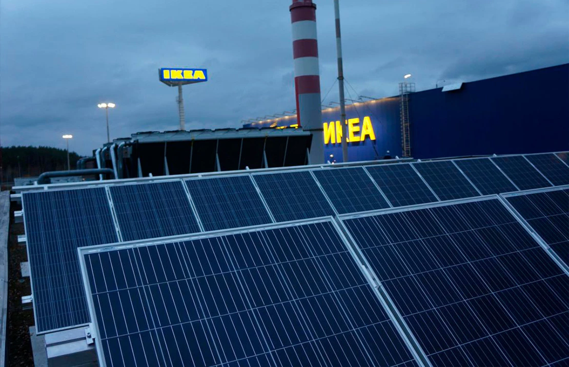 Сетевая СЭС мощностью 25 кВт на крыше ИКЕАс целью снижения затрат на электроэнергию