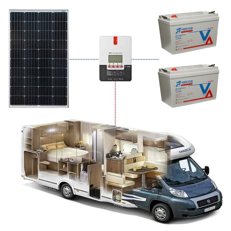Солнечная электростанция Автодом 200-1500, где за основу взят преобразователь напряжения (инвертор) СибКонтакт ИС-12-1500У с чистым синусоидальным выходным сигналом и входным напряжением 12 В, позволит обеспечивать электроэнергией все бытовые приборы автодома. Данную солнечную электростанцию можно использовать в автомобиле или автодоме для подзарядки штатного аккумулятора. Две солнечные батареи мощностью 200 Вт, входящие в комплект, обеспечат максимальный заряд током 11,76 Ампера ( при необходимости можно использовать более мощные солнечные батареи ). Рекомендуется для аккумуляторов с ёмкостью 100 Ач.