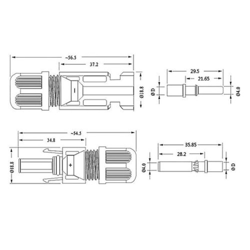 Характеристики Коннектор MC4 AB 45А для подключения солнечных панелей (комплект)