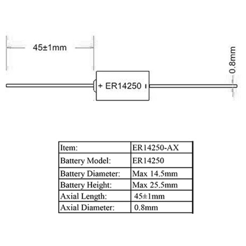 Характеристики Элемент питания ROBITON ER14250-AX 1/2AAс аксиальными выводами PH1 11619
