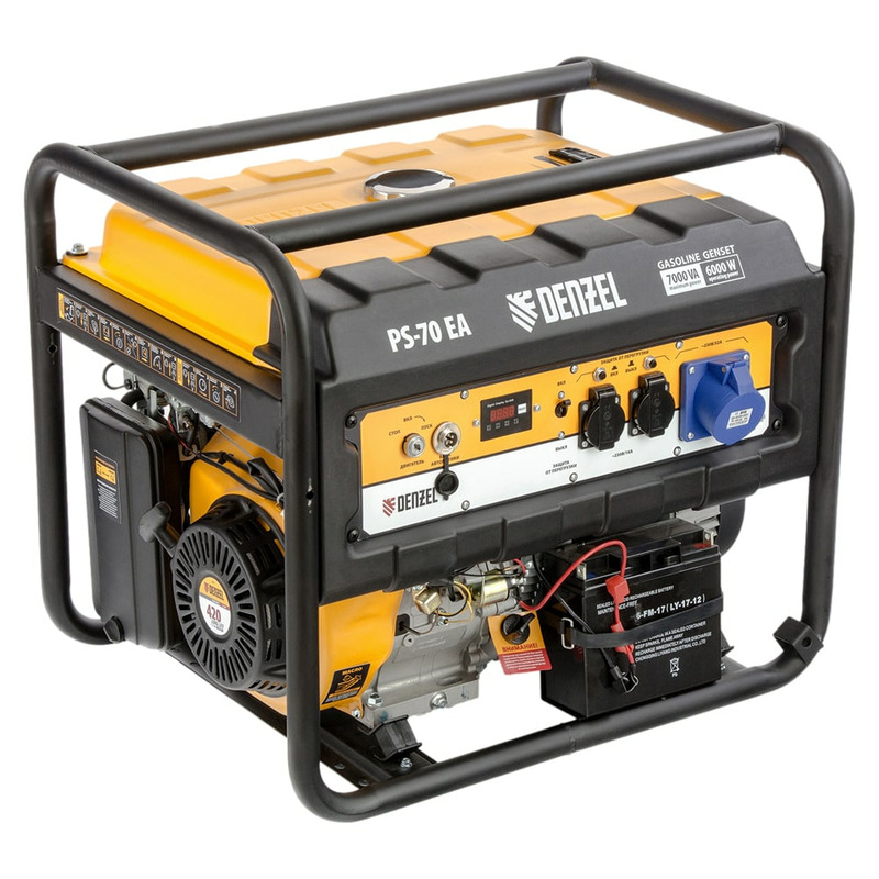 Бензиновый генератор PS 70 EA, 7 кВт, 230 В, 25 л, коннектор автоматики, электростартер Denzel
