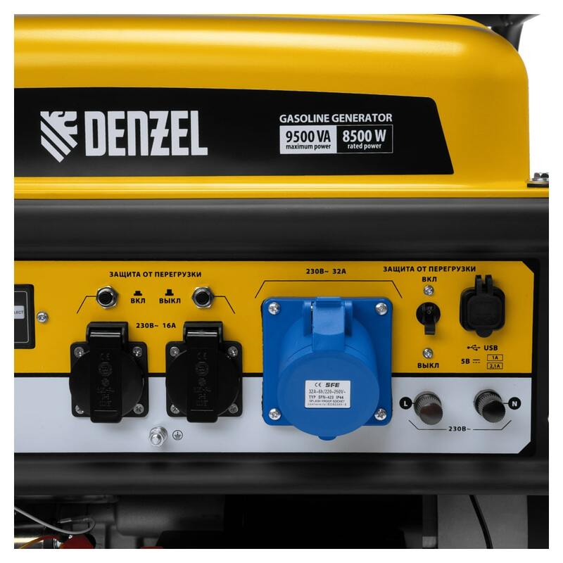 Бензиновый генератор PS-95EA-PRO, 9,5 кВт, 230 В, 40 л, разъём ATS, электростартер Denzel