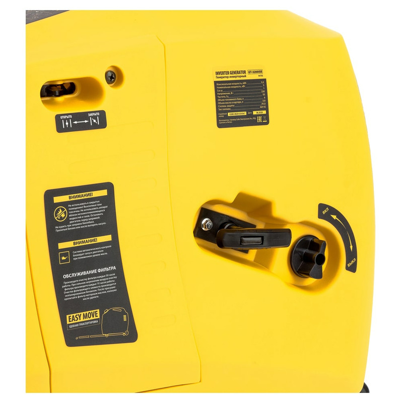 Характеристики Инверторный генератор GT-3200iSE, 3,2 кВт, 230 В, бак 6 л, электростартер Denzel