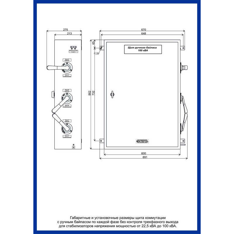 - Оборудован байпасом с коммутацией по каждой фазе отдельно