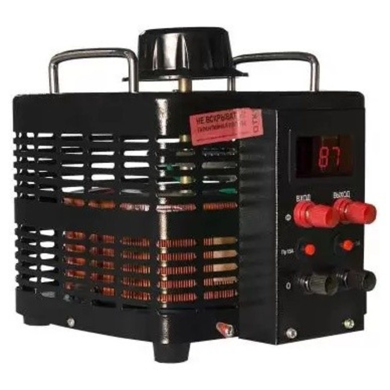 Автотрансформатор выполнен на тороидальном магнитопроводе с навитой на нем медной обмоткой, имеющей открытую (неизолированную) дорожку, обеспечивающую электрический контакт нагрузки с обмоткой при помощи скользящего контакта – угольной щетки.