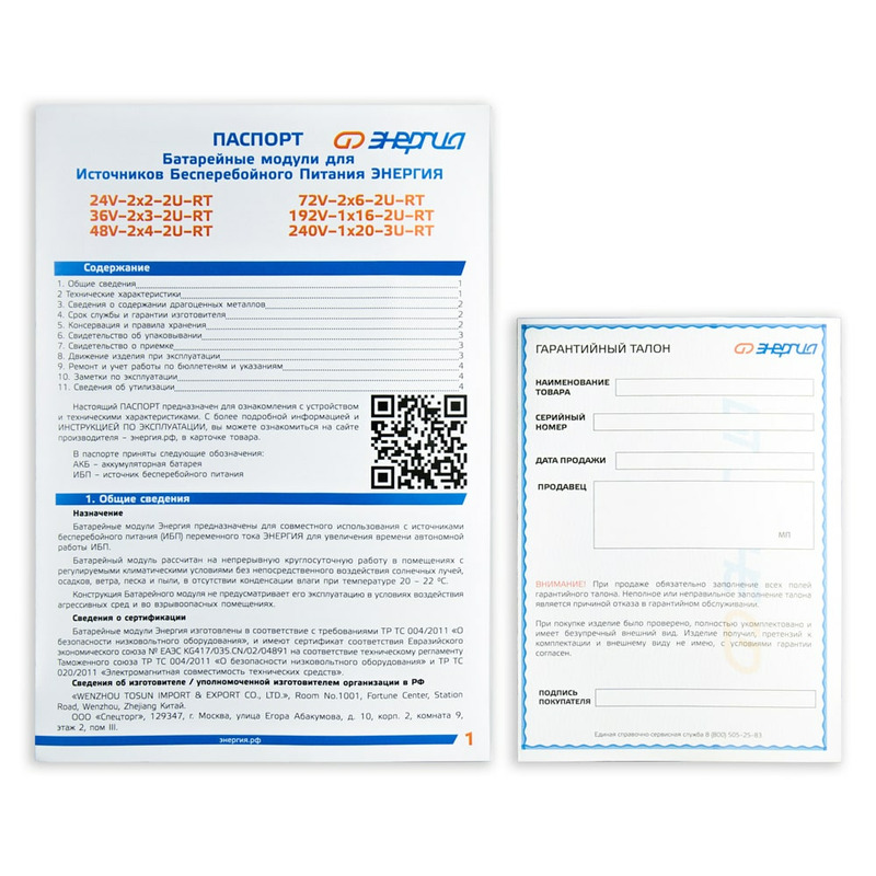 Батарейные модули Энергия предназначены для совместного использования с источниками бесперебойного питания (ИБП) переменного тока Энергия для увеличения времени автономной работы ИБП.