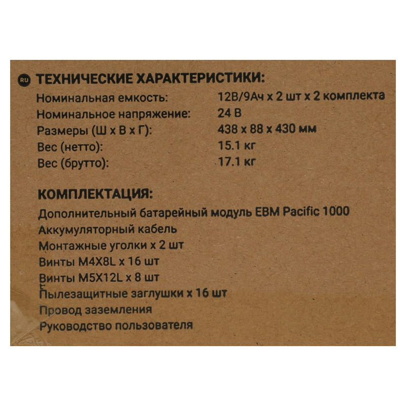 Характеристики Дополнительный батарейный модуль для Pacific 1000