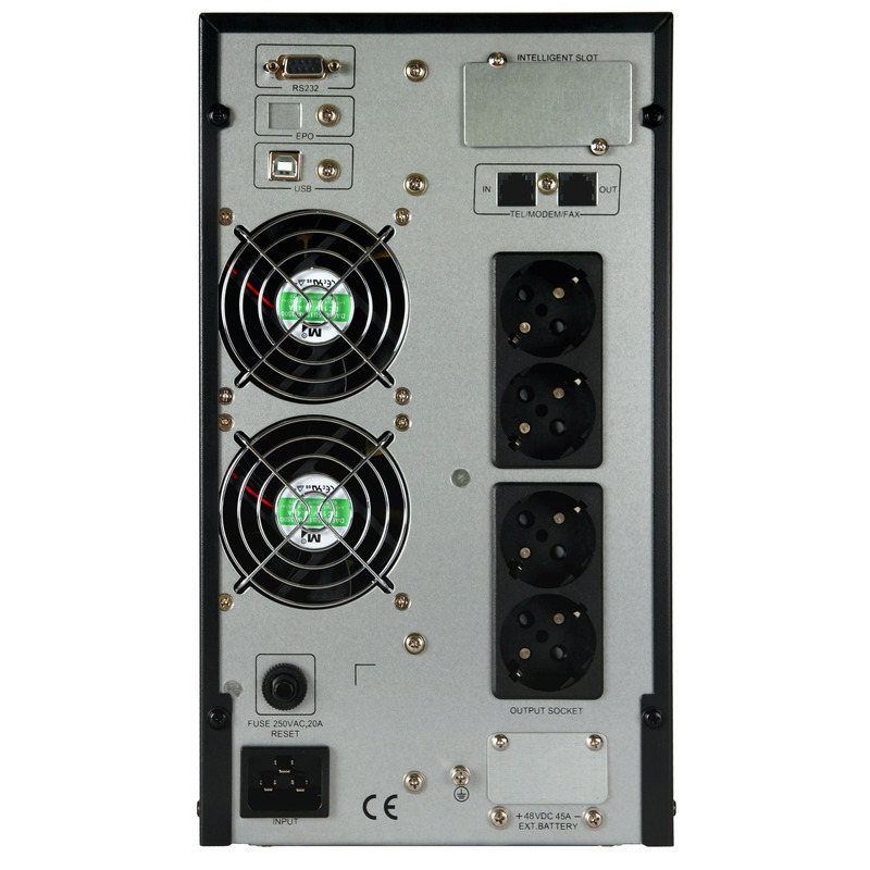 ИБП East серии EA900Pro относятся к классу online источников, работа которых происходит по следующему принципу: на первом этапе входное переменное напряжение внешней электросети (AC) преобразуется в постоянное напряжение (DC), далее встроенный в источник инвертор преобразует постоянное напряжение в переменное. Параметры напряжения на выходе ИБП находятся под постоянным процессорным контролем и поддерживаются с высокой точностью. Этим достигается эффект независимости выходного напряжения ИБП от внешней электросети и обеспечивается высокая степень защиты подключенной к ИБП нагрузки.