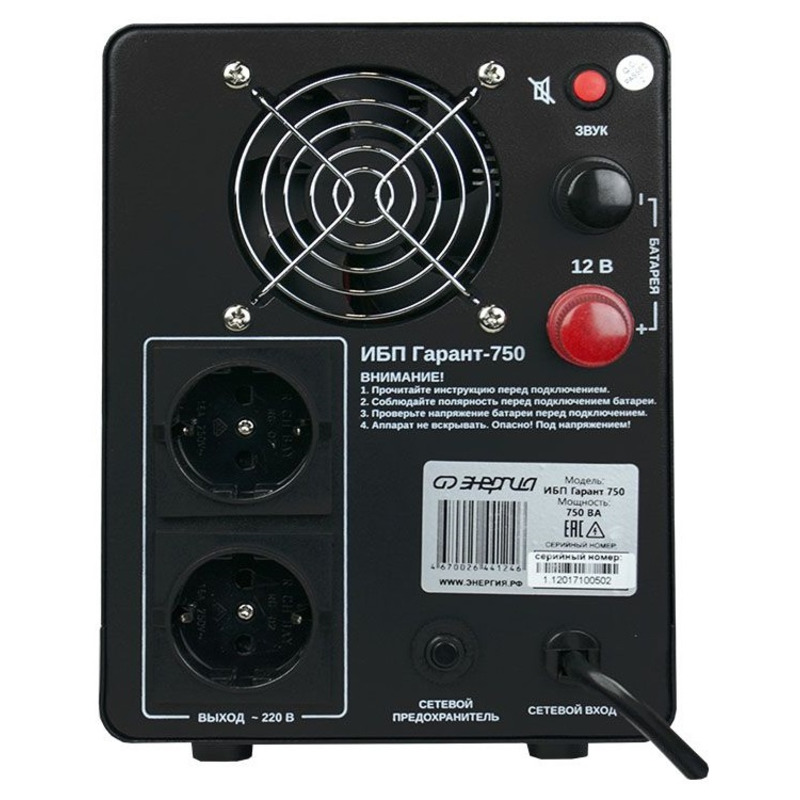 Характеристики ИБП Энергия Гарант 750