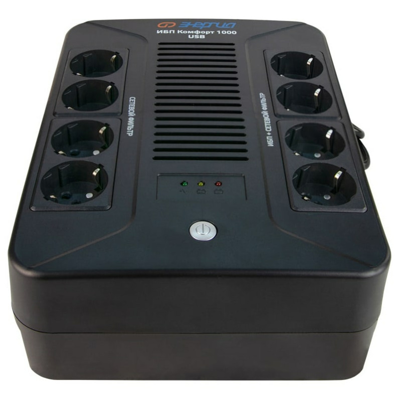 Источники бесперебойного питания Энергия серии Комфорт предназначены для защиты персональных компьютеров, аудиовидеоаппаратуры, офисной техники и другого оборудования небольшой мощности. Прибор прост в эксплуатации и оснащен восемью розетками, четыре из которых работают в режиме источника бесперебойного питания, стабилизатора и сетевого фильтра, и четыре - в режиме сетевого фильтра. Способ установки напольный.