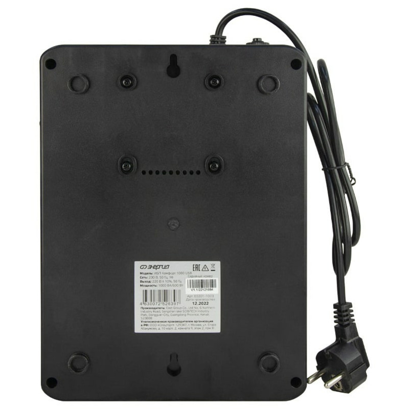 Характеристики ИБП Энергия Комфорт 1000 USB Е0201-1003