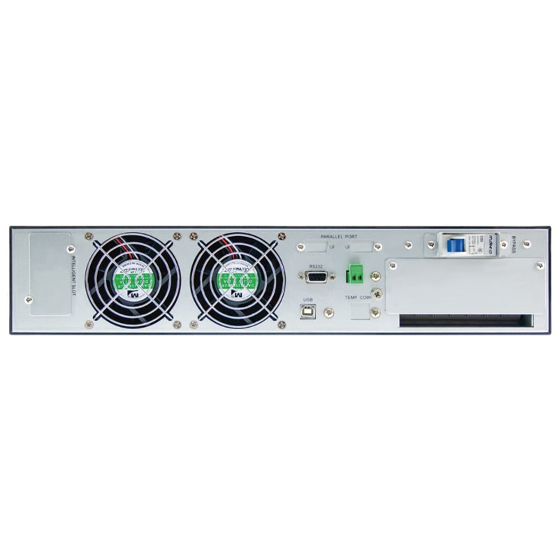 ИБП имеет интеллектуальный LCD и LED дисплей с кнопочным управлением для отображения параметров работы, микропроцессорное управление через DSP процессор - залог точной и бесперебойной работы устройства.
