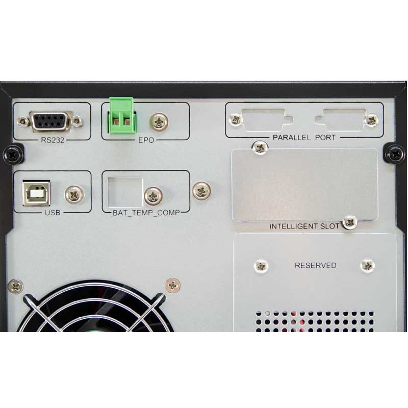 ИБП имеет интеллектуальный LCD и LED дисплей с кнопочным управлением для отображения параметров работы, микропроцессорное управление через DSP процессор - залог точной и бесперебойной работы устройства.