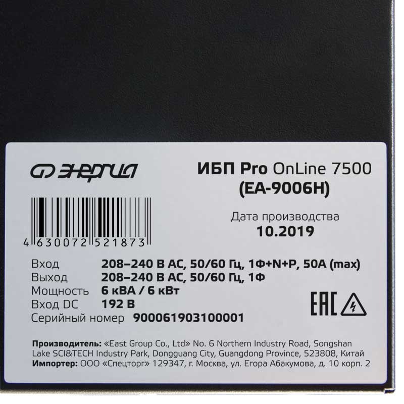 Доставка и оплата ИБП Энергия Pro OnLine 7500 напольный Е0201-0047