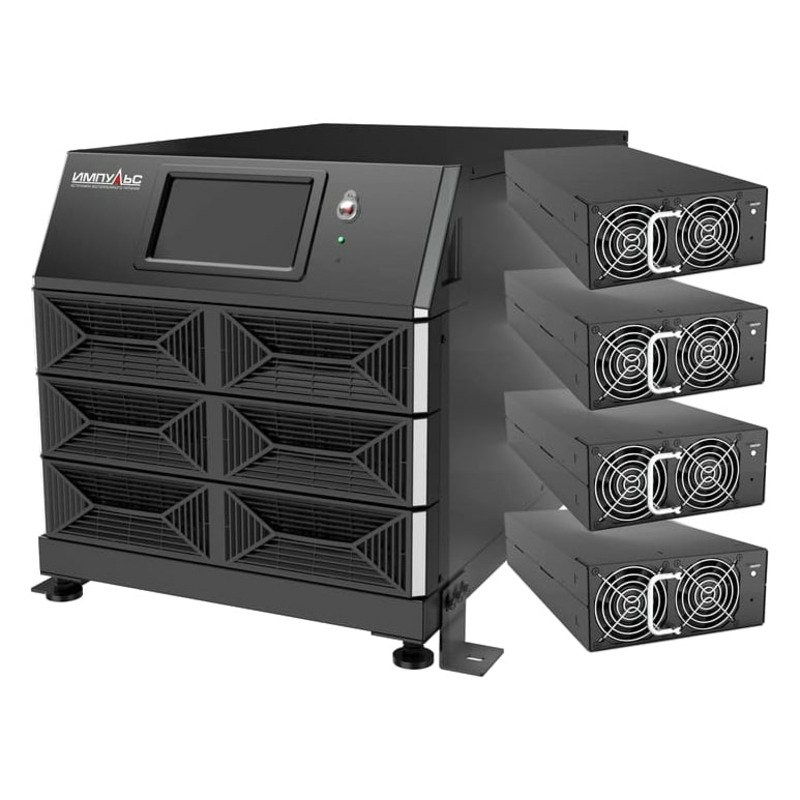 ИБП ИМПУЛЬС МУЛЬТИПЛЕКС 31 20-20 – это модульный ИБП с однофазным выходом, который может быть сконфигурирован с 6 модулями питания (максимум 20 кВА), 5 группами аккумуляторных модулей и дополнительным модулем зарядки на 10 А. Совместимы со всеми видами 19-дюймовых стандартных шкафов. Это решение особенно подходит для небольших и средних серверных помещений.