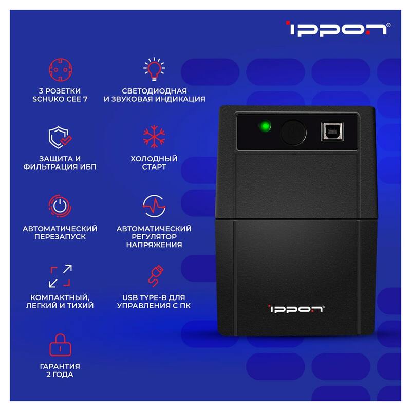 Характеристики ИБП Ippon Back Basic Euro 1050S