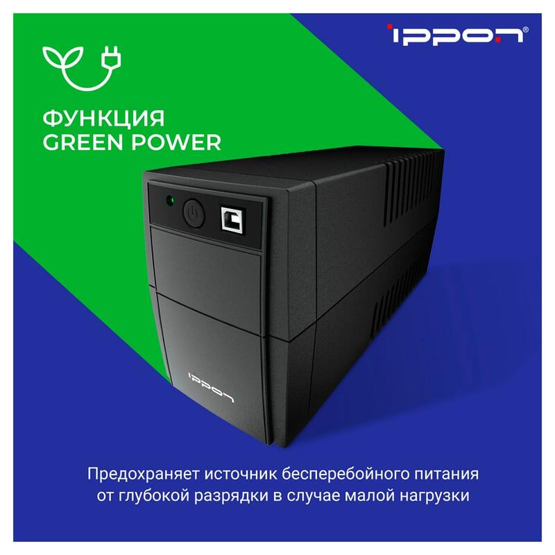 - Green Power автоматически отключает ИБП в случае малой нагрузки в режиме работы от батарей, предохраняя аккумуляторы от глубокой разрядки