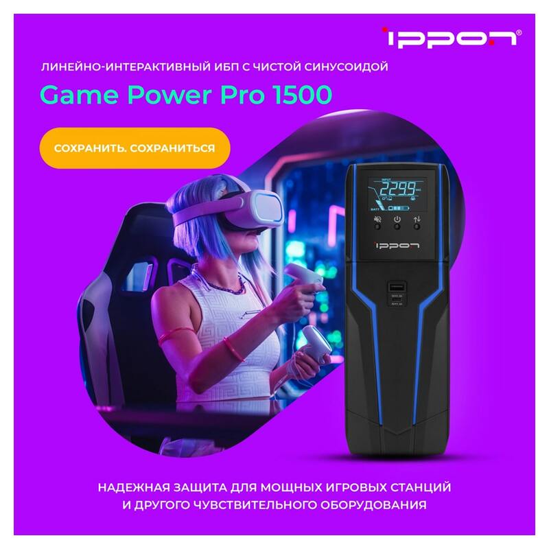 Источник бесперебойного питания Game Power Pro - идеальное решение для защиты вашего игрового оборудования от неожиданных отключений электричества или скачков напряжения. Этот мощный ИБП обеспечивает надежную защиту для вашего игрового процесса, позволяя наслаждаться игрой без перерывов и забот.