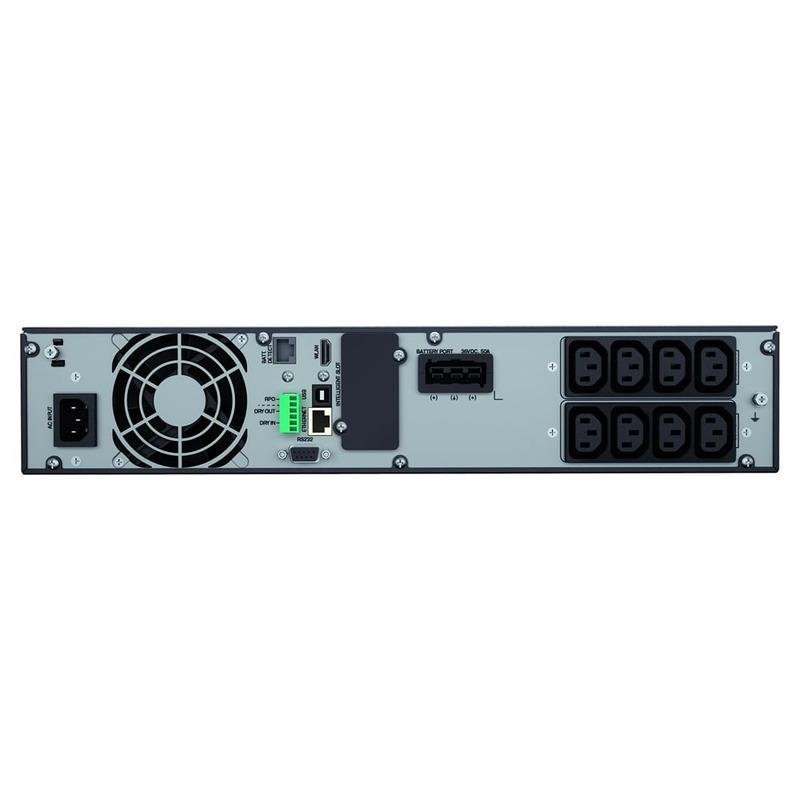 - Встроенные коммуникационные порты: удаленное отключение питания (RPO), "сухие контакты", RS-232 (COM), USB, интеллектуальный разъём