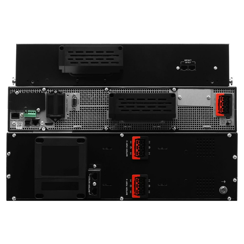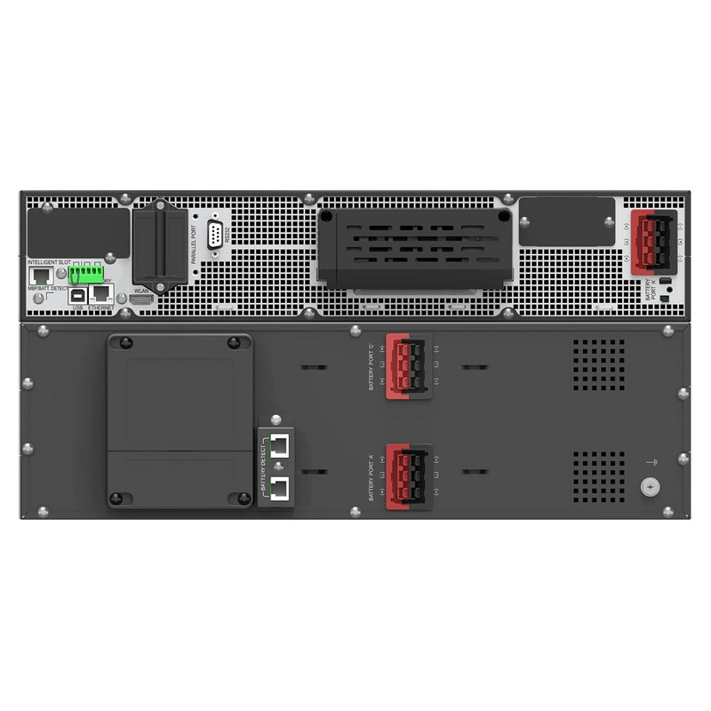 Источник бесперебойного питания Innova RT II New 10000 выполнен по технологии двойного преобразования с чистым синусоидальным сигналом на выходе (онлайн) выходной мощностью 10000 ВА. Корпус выполнен из металла, устройство можно установить горизонтально, вертикально с помощью подставки или встроить в 19" стойку, занимая в ней 5 посадочных мест (5U).