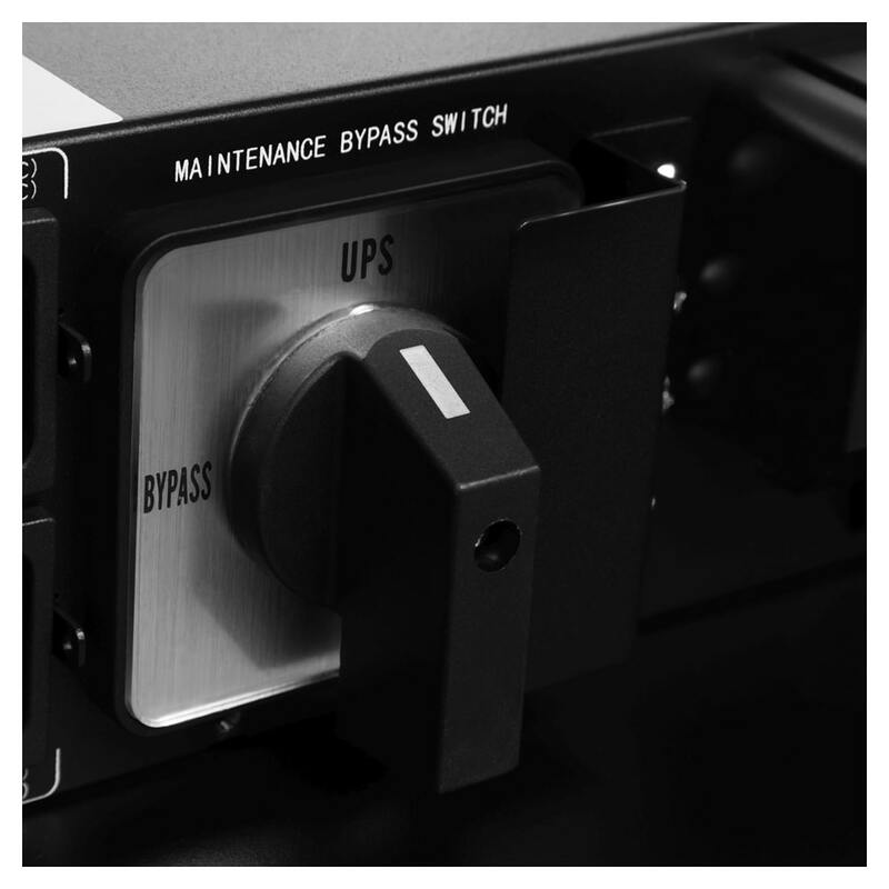 На передней панели ИБП размещён ЖК-экран, на котором отображается информация о режиме работы, состоянии нагрузки, событиях, измерениях и настройках и переключения рабочих режимов. Кнопки управления на передней панели позволяют пользователям выключить звуковое оповещение при неполадках питающего переменного напряжения или запустить тест последовательной самодиагностики ИБП и кнопки управления. Подсветка дисплея автоматически гаснет через 10 минут бездействия.