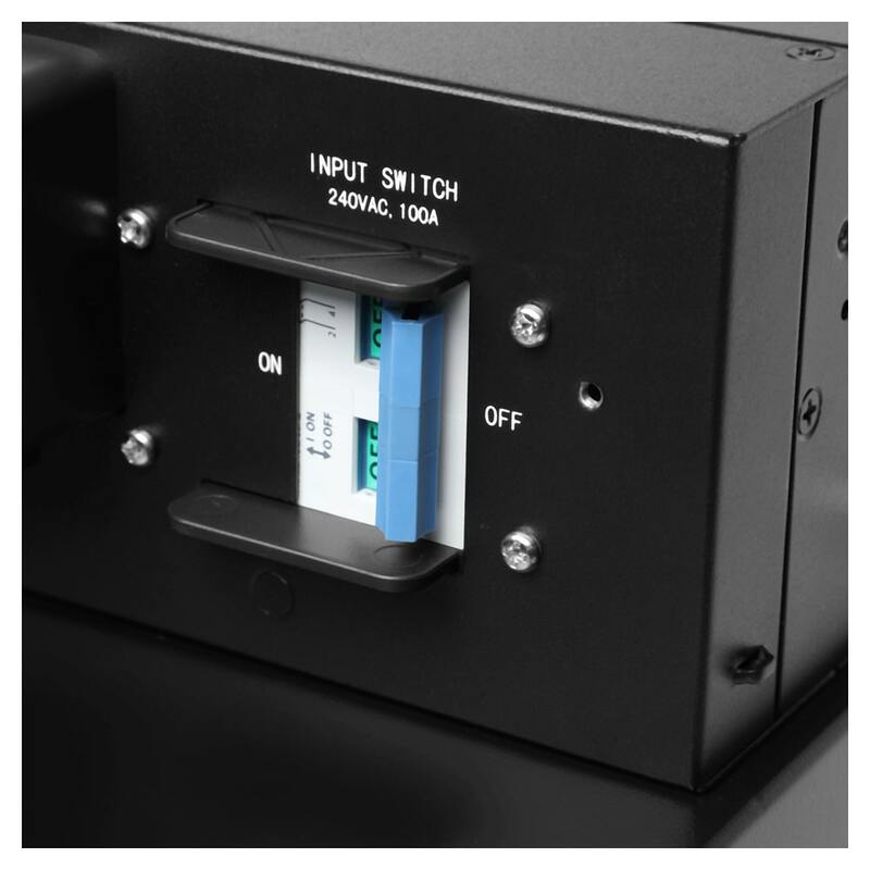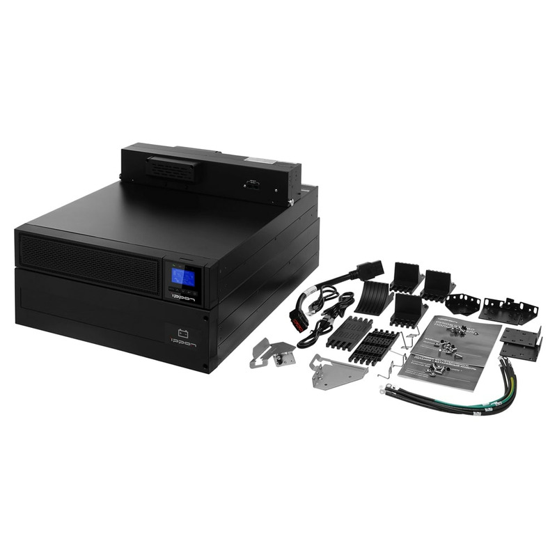 Источник бесперебойного питания Innova RT II New 6000 выполнен по технологии двойного преобразования с чистым синусоидальным сигналом на выходе (онлайн) выходной мощностью 6000 ВА. Корпус выполнен из металла, устройство можно установить горизонтально, вертикально с помощью подставки или встроить в 19" стойку, занимая в ней 5 посадочных мест (5U).