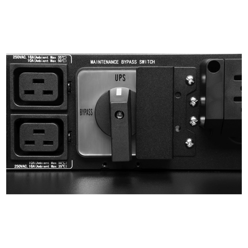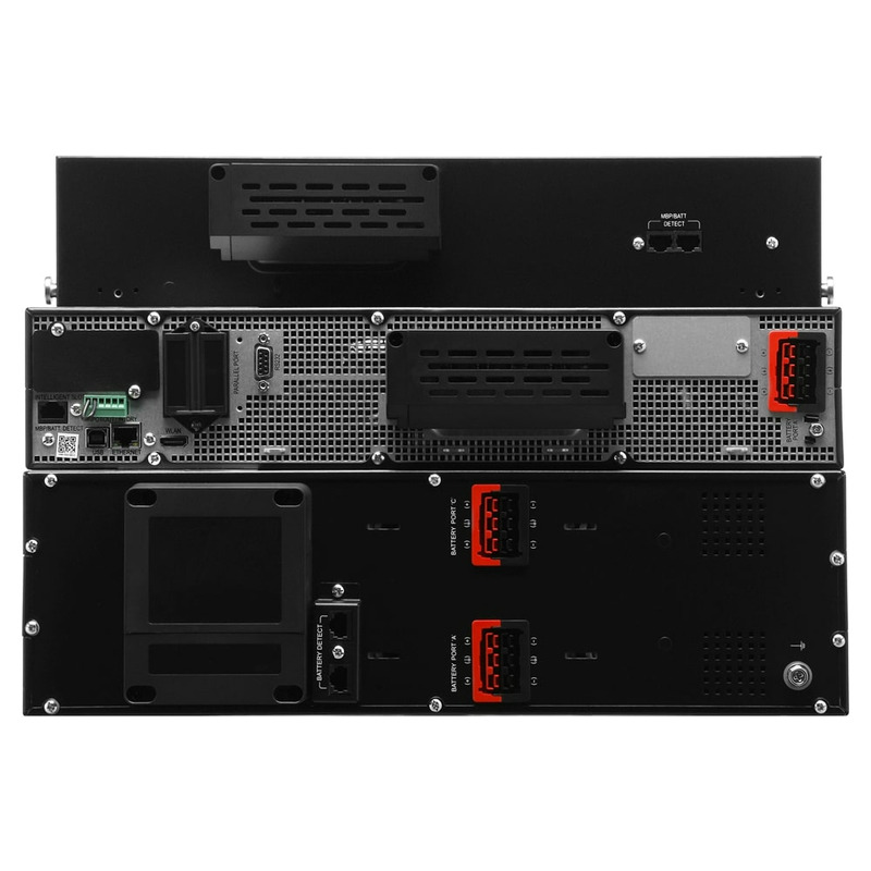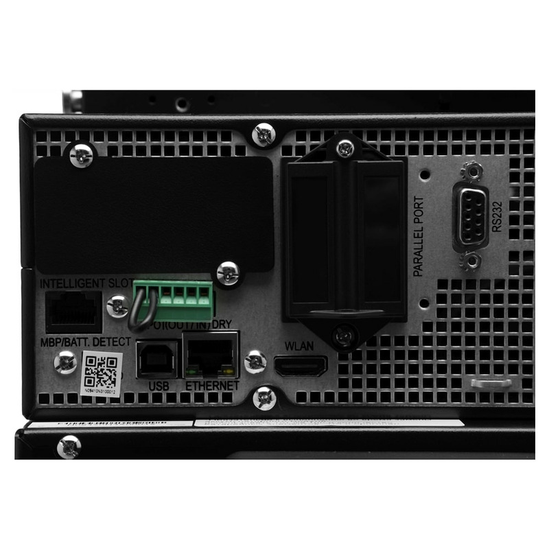 Для возможности удаленного управления ИБП оснащен интерфейсными портами и поддерживает EPO (Emergency power off), "сухие контакты", RS-232 (COM), USB, слот для карт расширения.