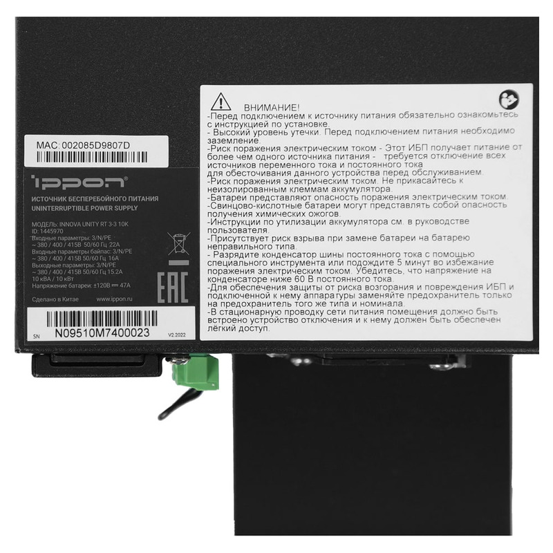 Характеристики ИБП Ippon Innova Unity RT 3-3 10K