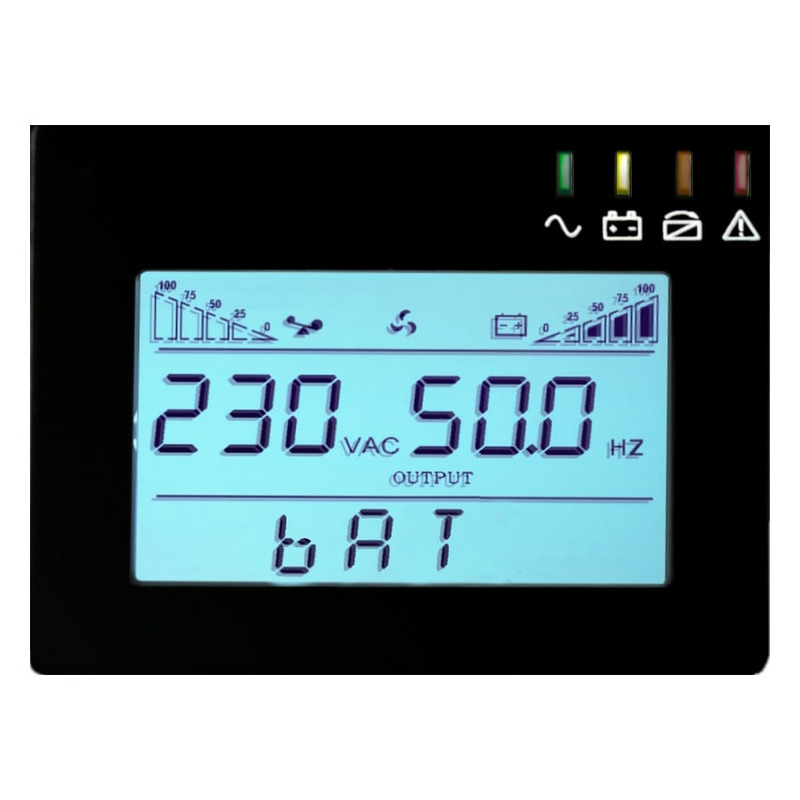 ИБП имеет защиту по входу и выходу от перегрузки, защиту от короткого замыкания, защиту инвертора от перегрева, предупреждение низкого напряжения на АКБ, защиту от глубокого разряда батареи и т. д.