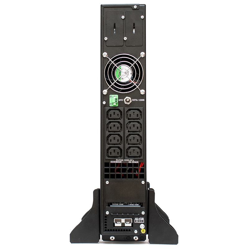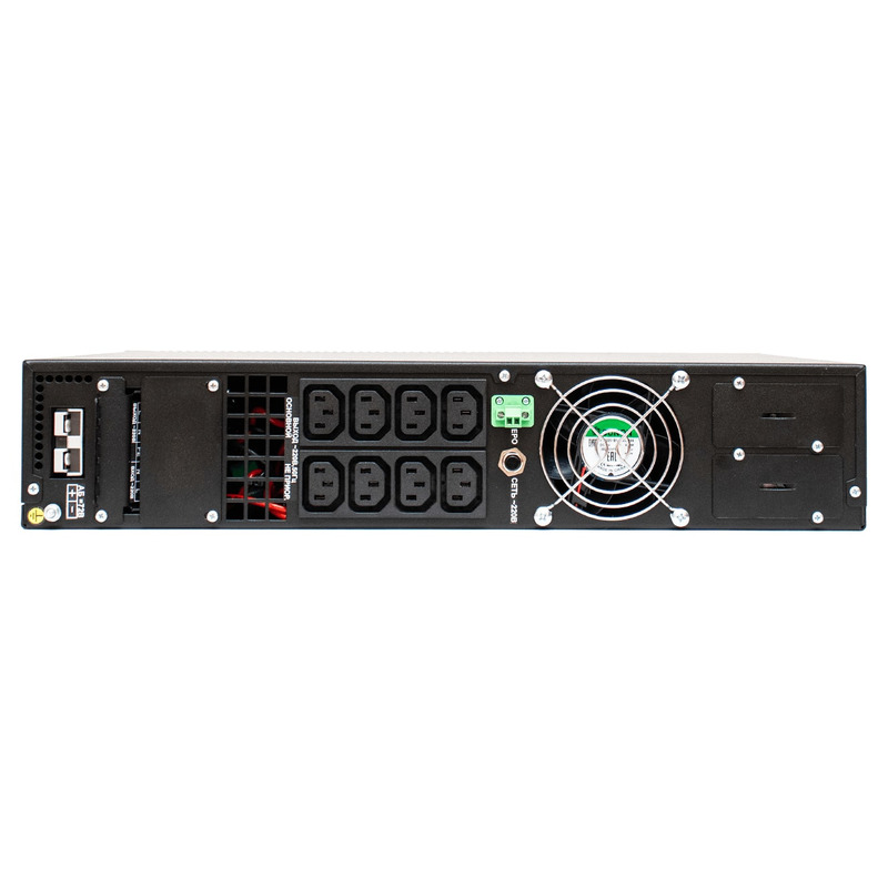 Для подключения электрооборудования ИБП имеет следующие разъемы: восемь «компьютерных» розеток С13 и клеммные колодки. Подключение к входной сети выполняется через выводы (L, N, PE).