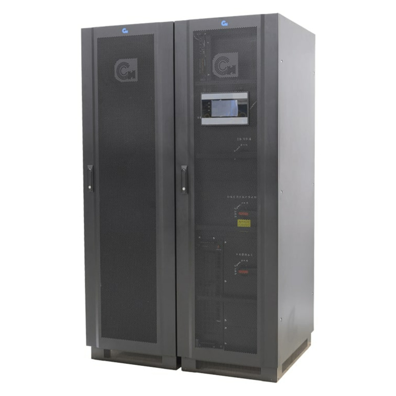 Модульный ИБП СИП380А500МД20.10-33/50 двойного преобразования, с трехфазным входом и выходом, полной мощностью 500 кВт. Предустановлено десять силовых модулей мощностью по 50 кВт. Подключение внешнего батарейного кабинета. Выходной коэффициент мощности 1,0.